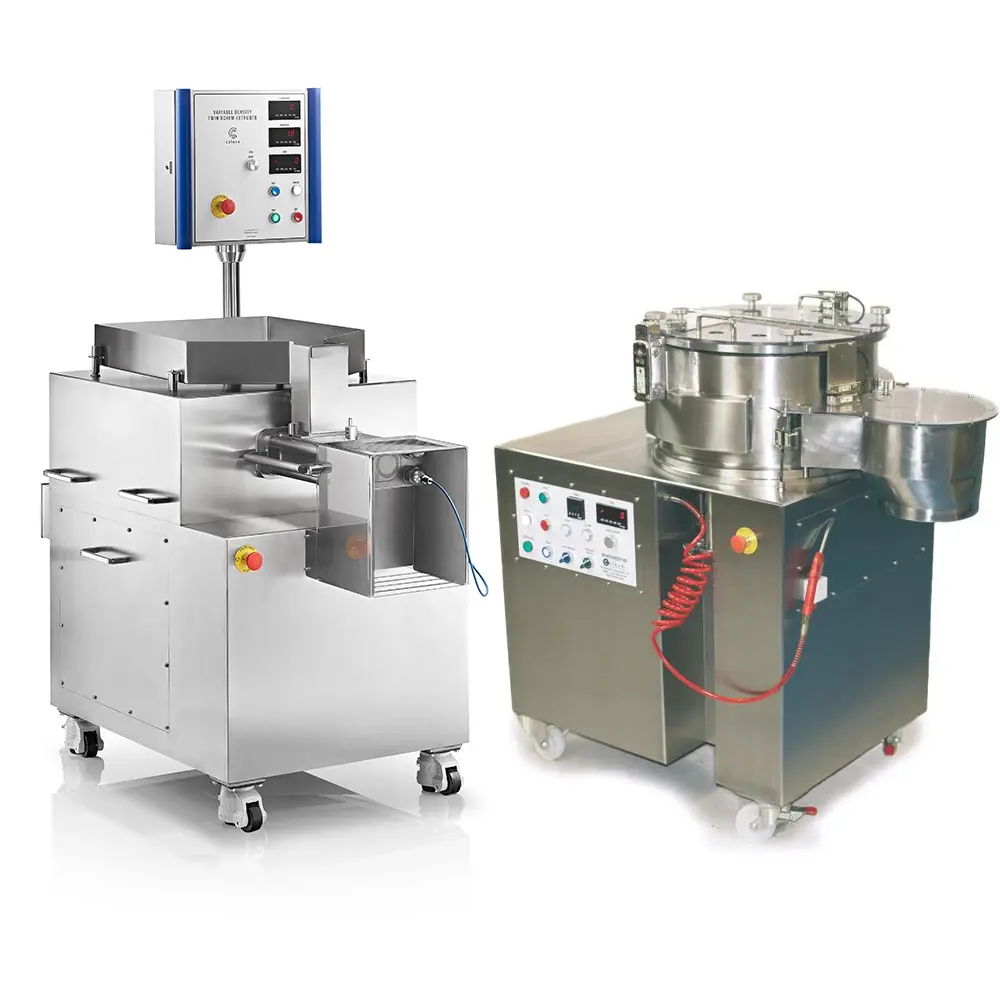 The higher capacity Caleva 100 kg/hour system is easy to dismantle and clean, allowing you to work with different materials, leading to manufacturing efficiencies and increased productivity.